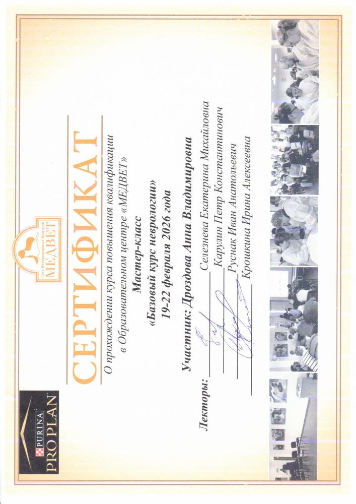 2012-2015г. года в должности ветеринарного врача в ветеринарной клинике "Дарвин", г. Москва;