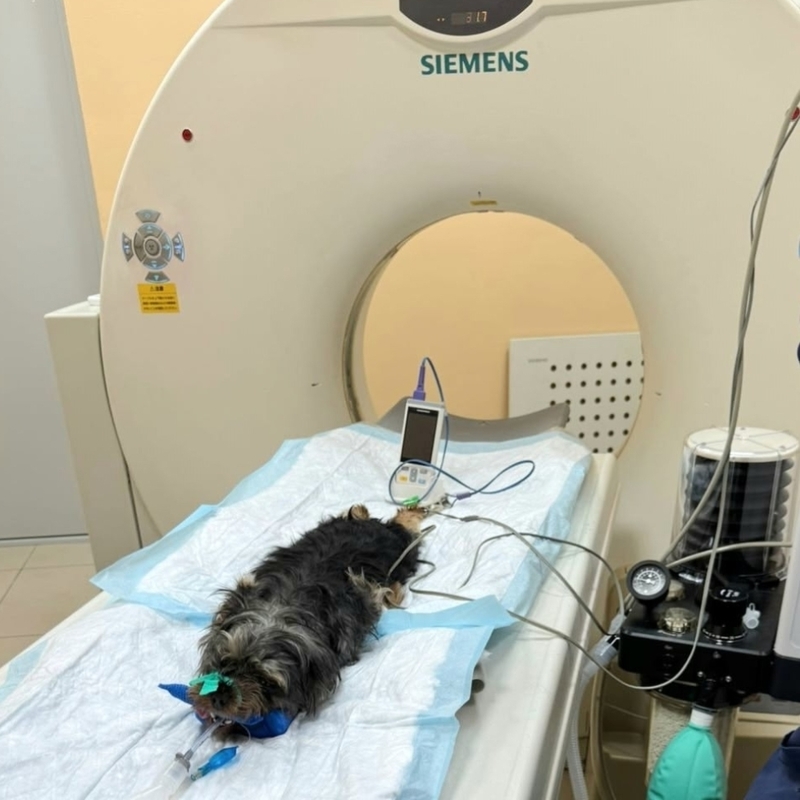 - Все время, пока животному выполняется томография, оно находится под постоянным наблюдением ветеринарного врача и анестезиолога. Наркоз подается при помощи современного аппарата с искусственной вентиляцией легких, что позволяет использовать минимальные дозы препаратов.