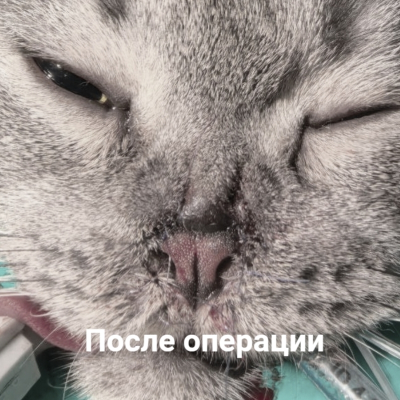 Операция была выполнена в Ветеринарной клинике БАРС на пр. Чайковского, д. 23. На фото: нос Микки до ринопластики, сразу после ее проведения и через пару недель после. Если сравнить первый и третий-четвертый снимки, то очень хорошо видно, насколько расширились ноздри кота благодаря пластической коррекции.