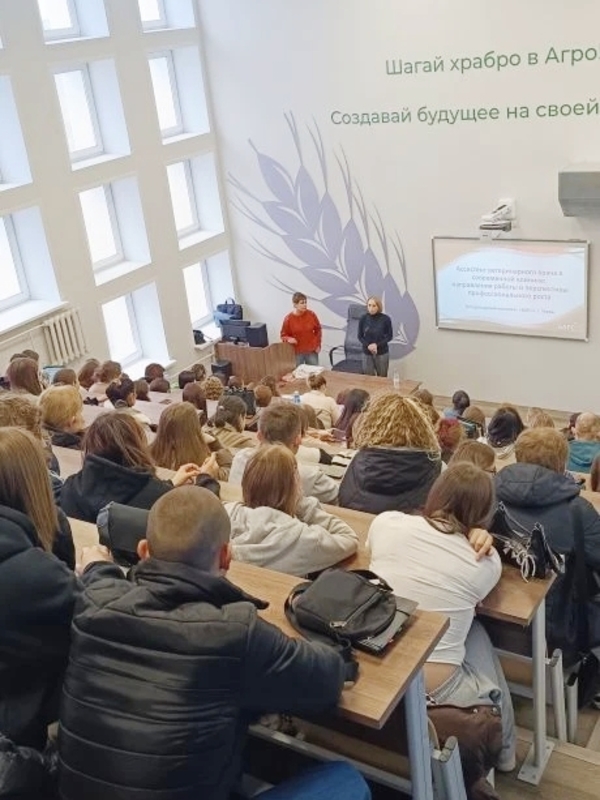 На встрече со студентами ТГСХА Ветеринарный комплекс БАРС представили: главный врач Ветеринарного комплекса БАРС Анна Владимировна Дроздова и заместитель директора Екатерина Павловна Близнюк.