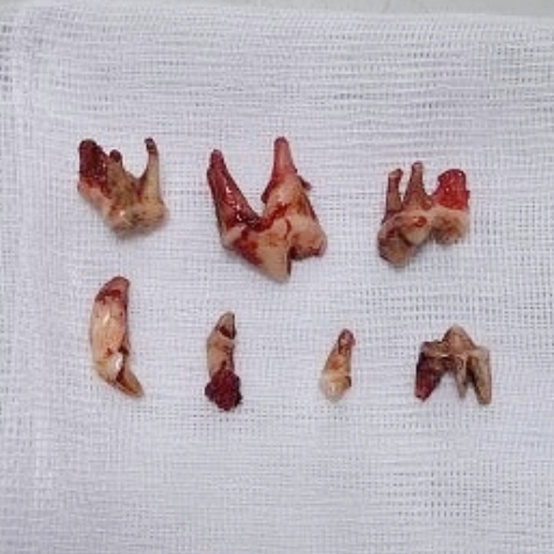 🐕 На фото: джек-рассел терьер Дэни и ее зубки - требующие чистки и удаленные при санации ротовой полости. Да, Дэни пришлось расстаться с семью зубами, но врач удалил их без малейшего сожаления, ведь зубы, пораженные кариесом, способны серьезно навредить здоровью питомца: на фоне хронической "стоматологической" инфекции у питомца могут развиться заболевания почек, мочевого пузыря, сердца, печени, желудка и кишечника.