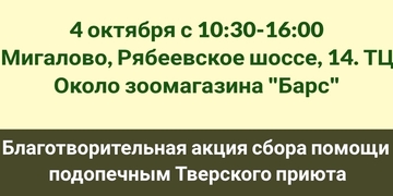 Во Всемирный День защиты животных приглашаем присоединиться к акции и просим поддержать подопечных Тверского приюта для безнадзорных животных!