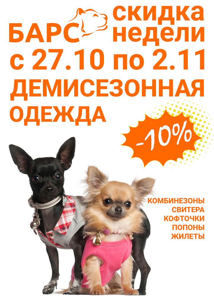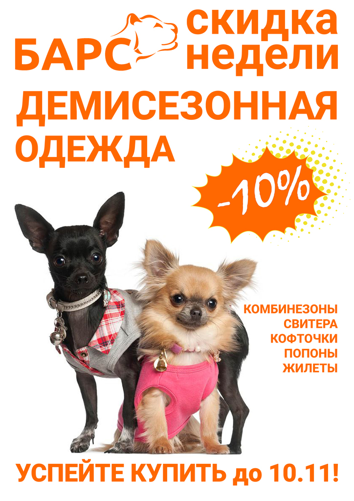 Ассортимент товара, участвующего в акции, уточняйте у продавца. Ждем вас и ваших любимых шерстяных друзей в Зоомагазине БАРС на Рябеевском шоссе, 14! Для того чтобы выбрать самый удобный вариант одежды, ее необходимо примерить перед покупкой. Поэтому приходите с питомцами!