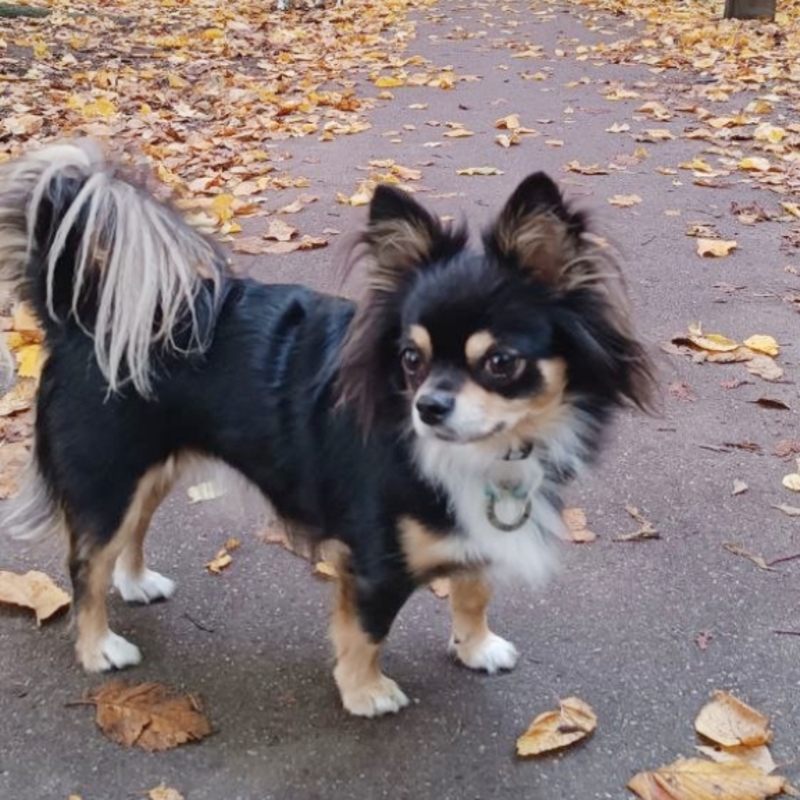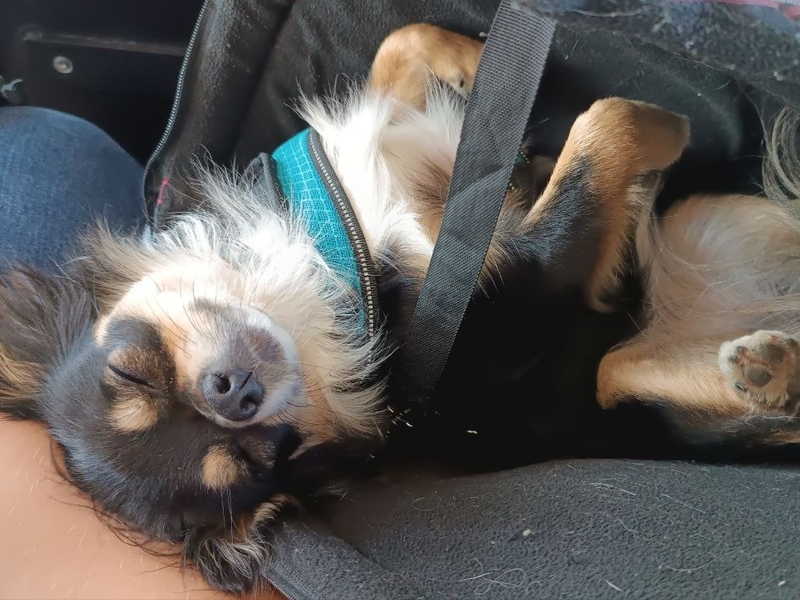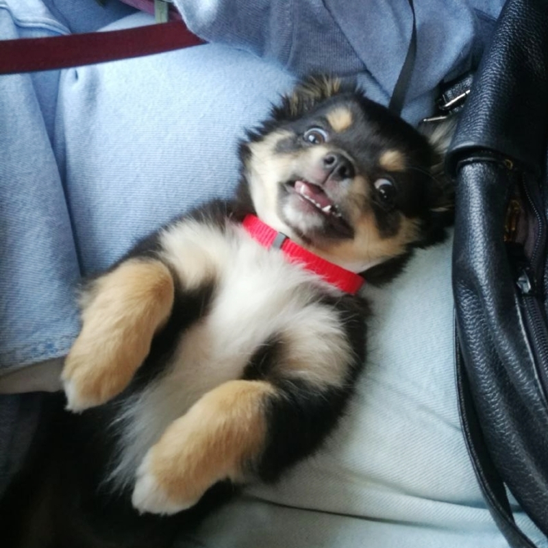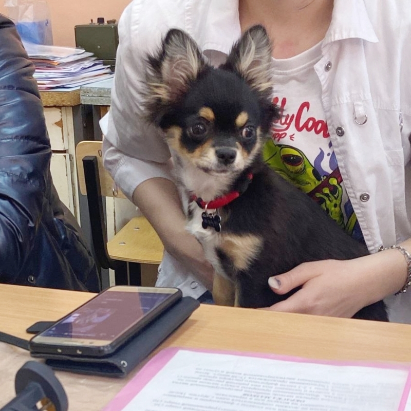 Ну а Маруся - это моя желанная, самая заветная мечта! СОБАКУ я хотела очень давно, наверное, с того дня, как начала жить одна, но всегда что-то останавливало. То времени нет, то средств, то жизнь в общаге. И вот СВЕРШИЛОСЬ! В один из майских дней на большой черной машине мне привезли маленькую черную собачку со смешными ушами. И жизнь сразу заиграла новыми красками! Начались бессонные ночи с постоянным слежением, чтобы щеночек не пописал и не покакал куда не надо, чтобы не замучил кота, не съел его корм, не погрыз провода... Мелочь ездила со мной на работу, на учебу, во все магазины и на все прогулки (благо, тогда она весила килограмм и помещалась в рюкзаке). На работе у нее даже было свое рабочее место - на переносных ступеньках за стойкой регистрации в клинике. Дед ее научил умываться и не делиться лежанками, а она донимала его своими играми. Что, собственно, сейчас Маруся прекрасно передает второй собаке)...