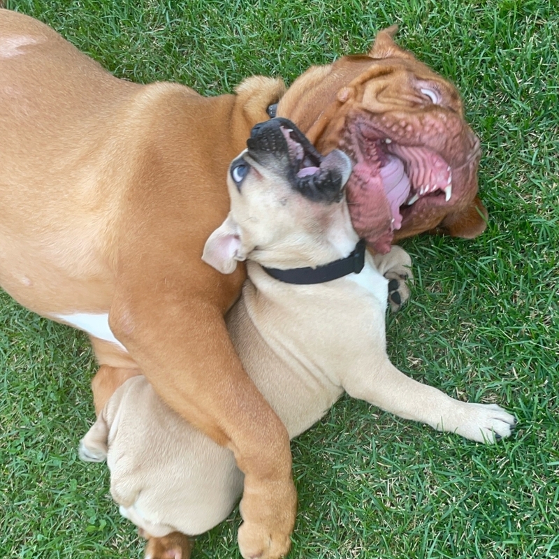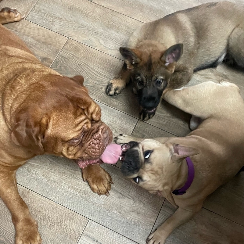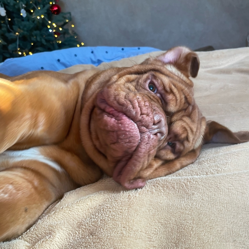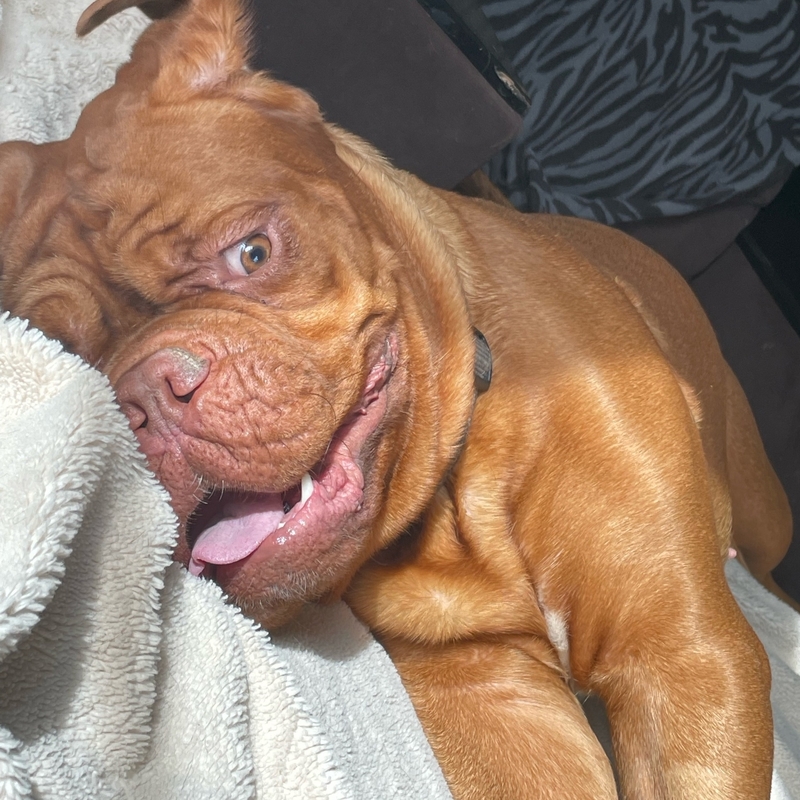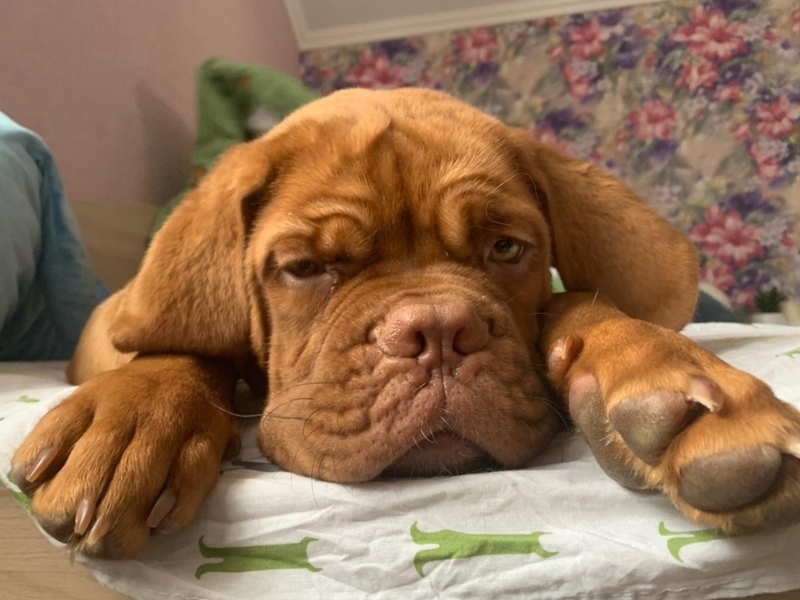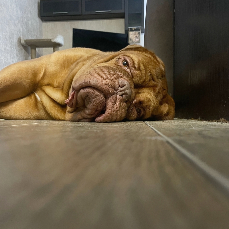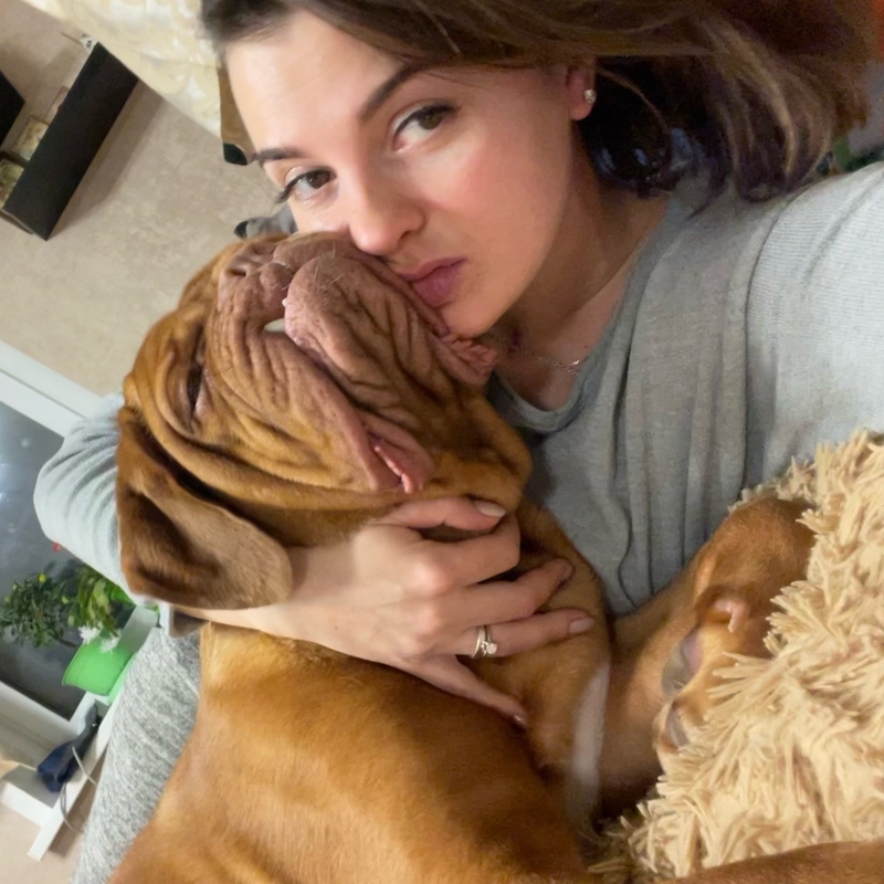 Наша прекрасная малышка Джессика - бордосский дог. Ей 6 лет, и это единственная женщина в нашей в нашей большой хвостатой семье. Несмотря на то, что Джесси больших размеров, она очень добрая, нежная и дружелюбная)))
