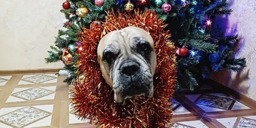 Ева - серьезная собака, но даже она готовится встречать Новый год в праздничном наряде!